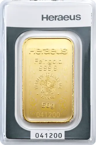 Goldbarren 50 Gramm Heraeus
